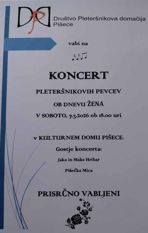 Vabilo: Koncert Pleteršnikov pevcev, 7. marca 2026
